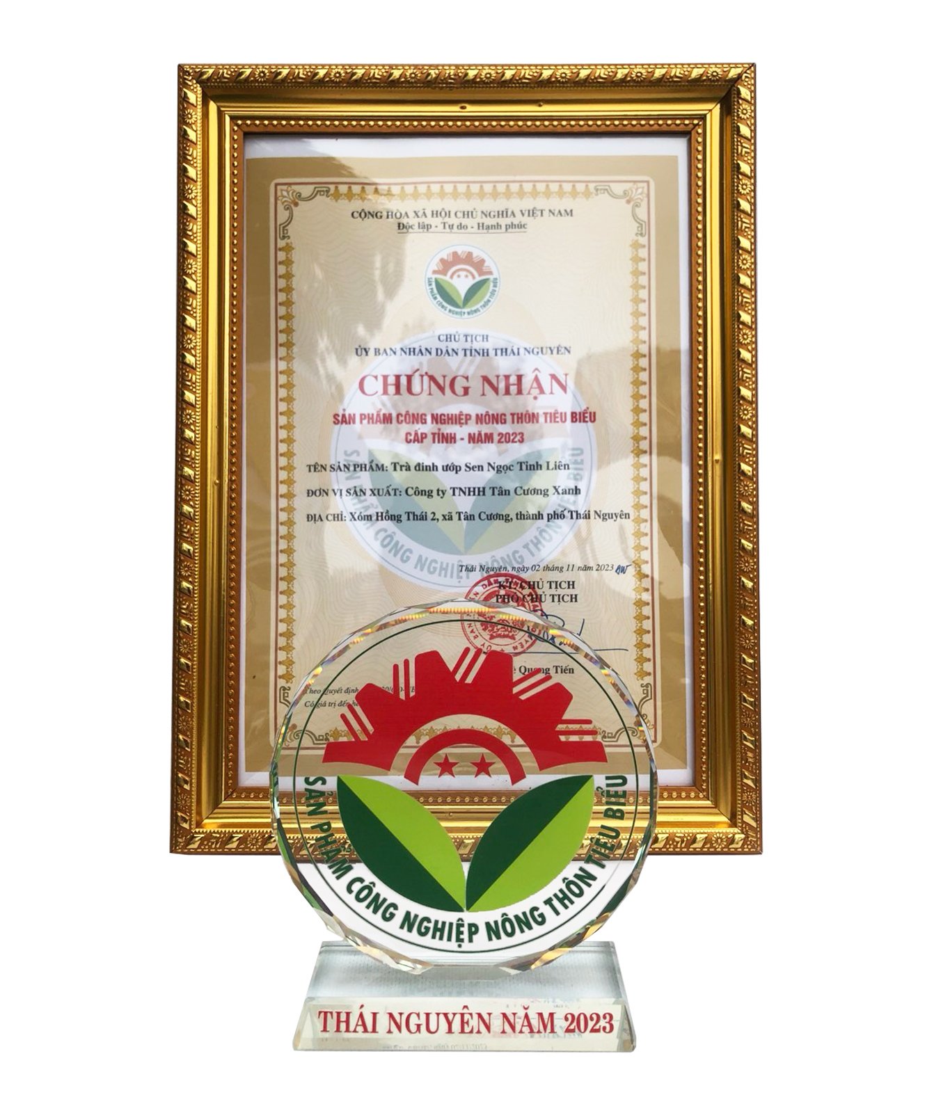 Tân Cương Xanh với nhà máy rộng 12 000m2 nằm tại xóm Hồng Thái 2, xã Tân Cương, TP. Thái Nguyên, tỉnh Thái Nguyên, các vườn trà sạch được trồng hữu cơ theo tiêu chuẩn sạch Vietgap, được quản lý chất lượng nghiêm ngặt, Nhà máy Tân Cương Xanh đã được cấp giấy chứng nhận xuất khẩu FDA Hoa Kỳ, ISO 22000, Ocoop…